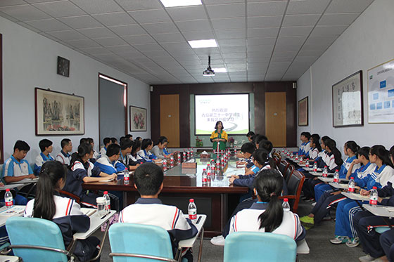 2016年10月19日,青島第三十一中學(xué)組織學(xué)校師生到我公司參觀學(xué)習(xí)。路博財(cái)務(wù)總監(jiān)楊總和營(yíng)運(yùn)總監(jiān)梁總?cè)膛阃瑓⒂^。