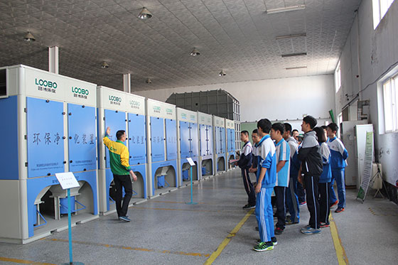 在楊總和梁總的帶領(lǐng)下,同學(xué)們首先詳細(xì)了解了路博發(fā)展歷程和環(huán)保行業(yè)現(xiàn)狀,隨后參觀了公司的室內(nèi)環(huán)保展廳、工業(yè)環(huán)保展廳和生產(chǎn)車間,使同學(xué)們對(duì)于環(huán)保設(shè)備和工藝有了初步而直觀的了解。